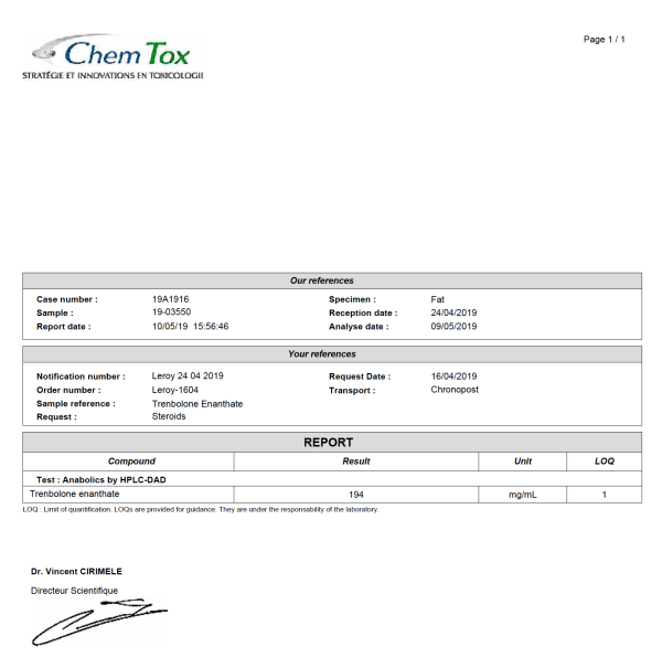 Contenu : 100 mg / ml d’acétate de trenbolone (Flacon de 10 ml)
